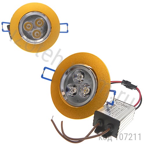 Лампа светодиодная потолочная 3х1 Ватт, 220В, 220лм, 3200K, d=86 мм (тип 2)