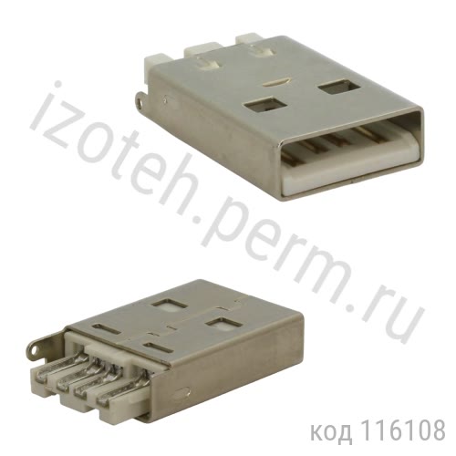 Разъем USB (п) на кабель, тип А (пайка) (USB A 16)