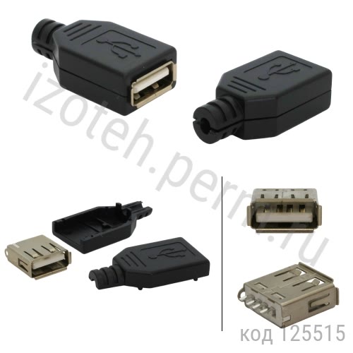 Разъем USB (м) на кабель, тип А (пайка) (USB AF) пласт.кожух