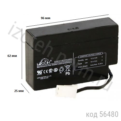 Аккумулятор 12V- 0,8Ah
