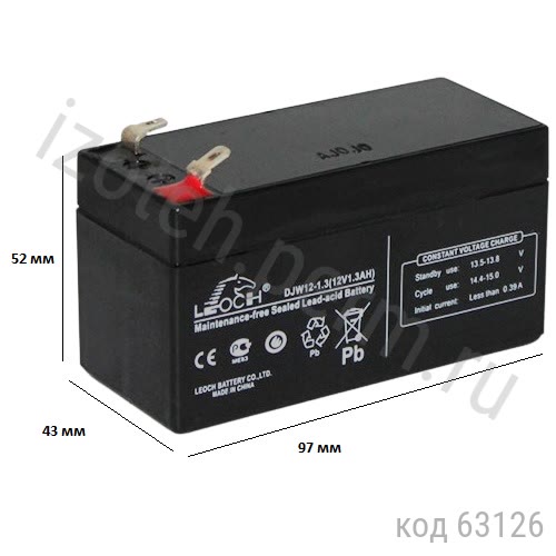 Номинальная емкость (25°С) 20 часовой разряд, Ач:1,3