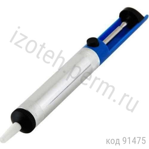 Корпус изготавливается из металла (алюминий) и легко разбирается для обслуживания (смазка и очистка). Забор припоя производится посредством антистатического наконечника (диаметр 3.2 мм), который выполнен из высокотемпературного тефлона. Особенность данного оловоотсоса - специальный чистящий стержень, который удаляет остатки припоя после каждого использования, не допуская таким образом засорения канала.