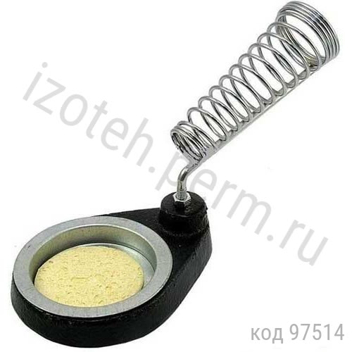 Выполнена из витой конусообразной пружины и круглой чугунной платформы с ложементом под губку для очистки жала паяльника от остатков припоя